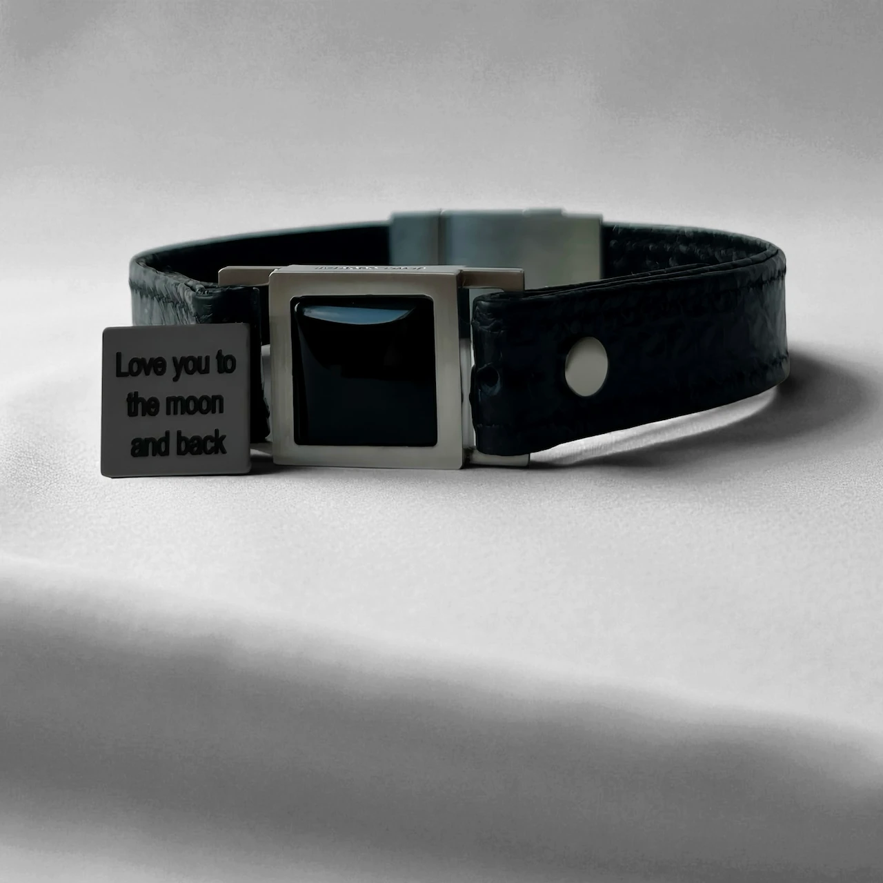 Мужской браслет с натуральным чёрным агатом — символ силы, защиты и внутренней устойчивости. Внутри — скрытое послание.