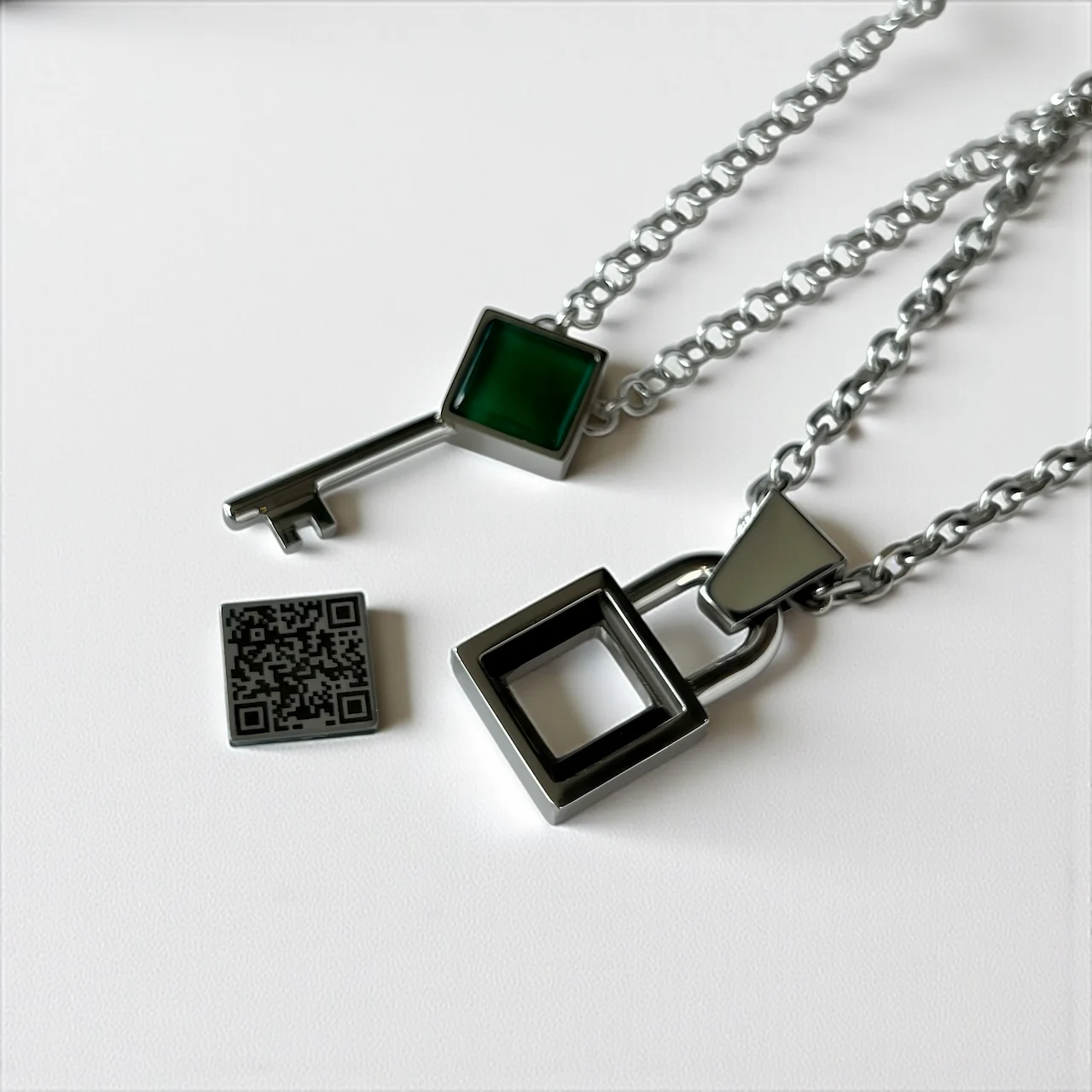 Зелёный агат — Жизненная сила · Рост · Процветание. Зелёный агат символизирует обновление, стабильность и уверенность. В подвесках Key & Lock — «Процветайте вместе» он отражает рост двух путей, которые соединяются и усиливают друг друга, даря баланс, гармонию и ощущение будущего процветания.