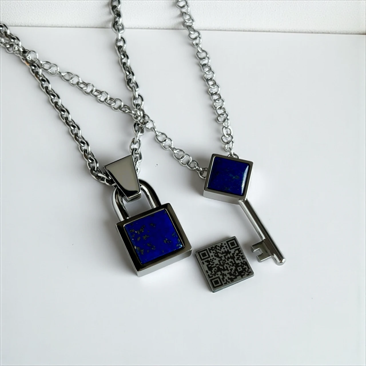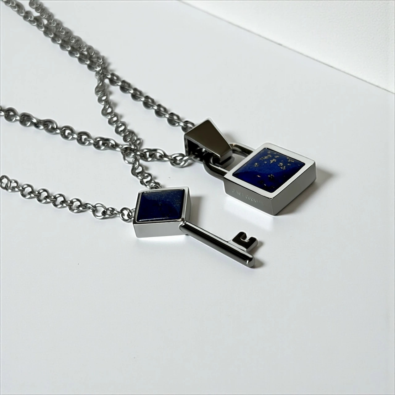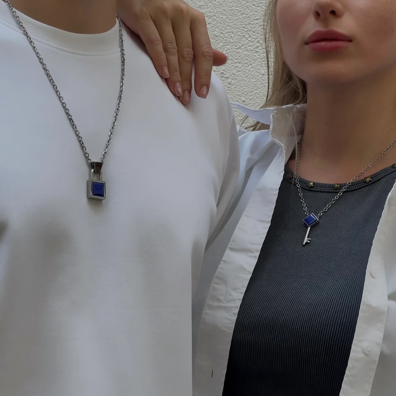 Лазурит — мудрость · интуиция · духовная связь. Лазурит пробуждает внутреннюю истину и ясность. В Key & Lock – Soul Union он символизирует духовную близость и интуитивное единение. Талисман глубоких связей и гармонии двух душ.