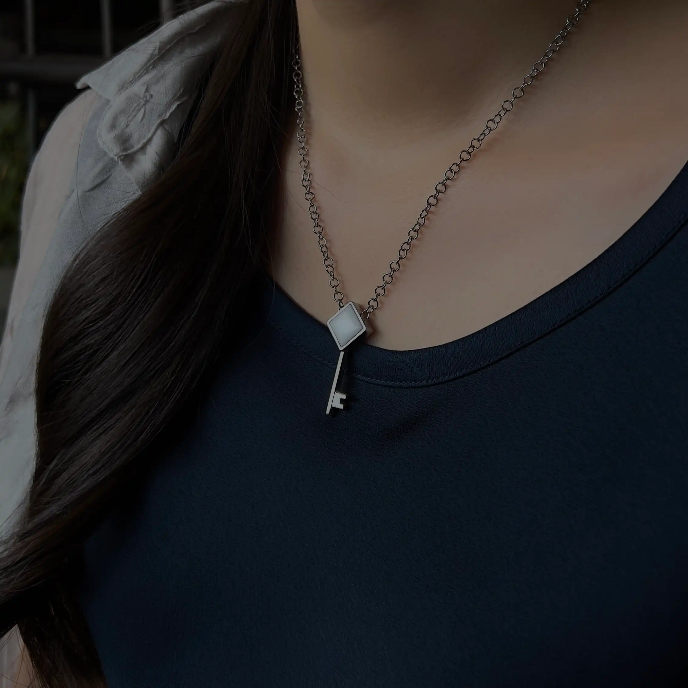 Женская подвеска с натуральным белым агатом — символ ясности, внутреннего баланса и уверенности. Внутри камня скрыто персональное послание.