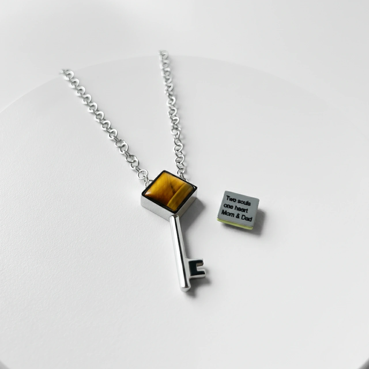 Женская подвеска с натуральным тигровым глазом и скрытым посланием внутри.