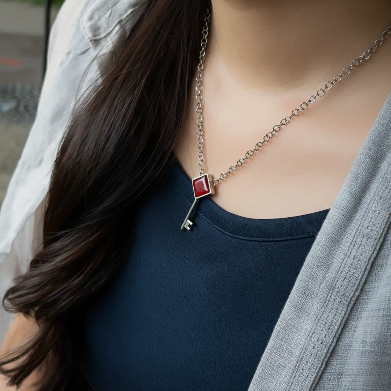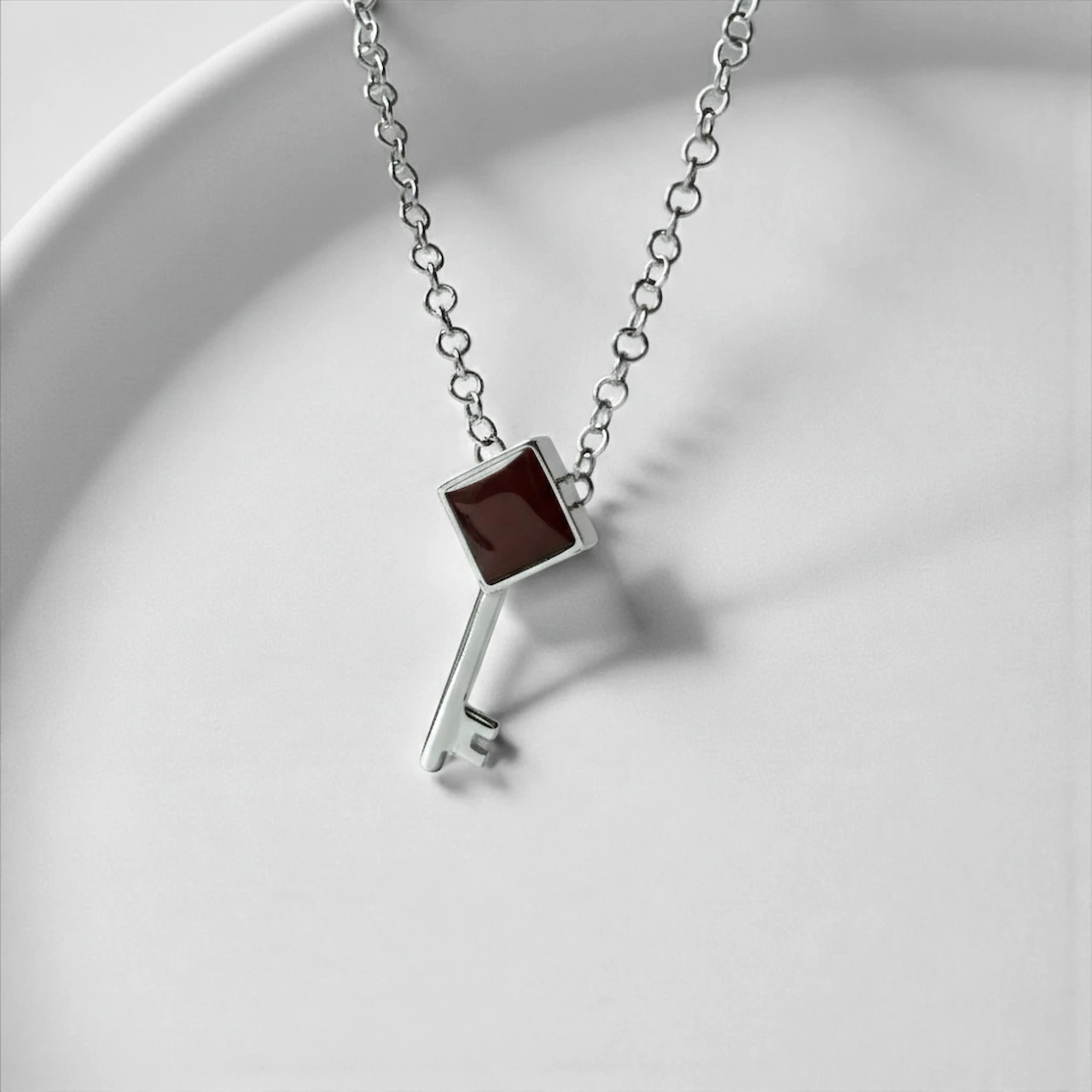 Женская подвеска с натуральным красным агатом и скрытым посланием внутри.