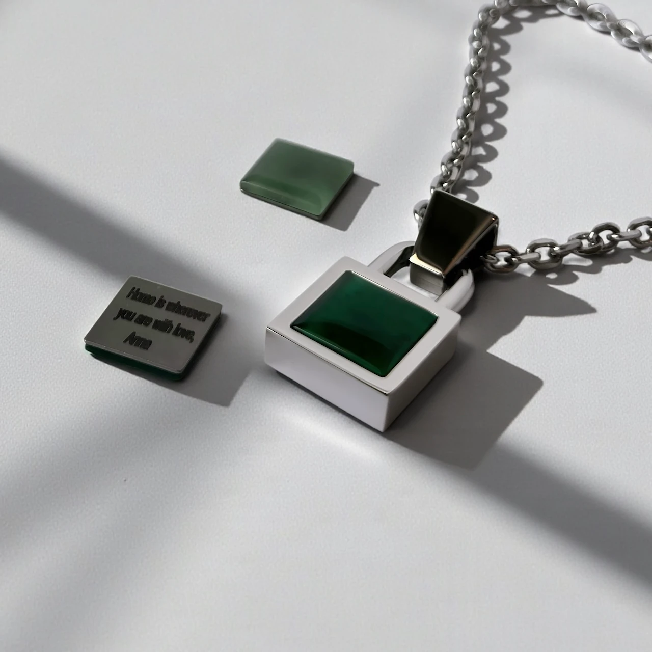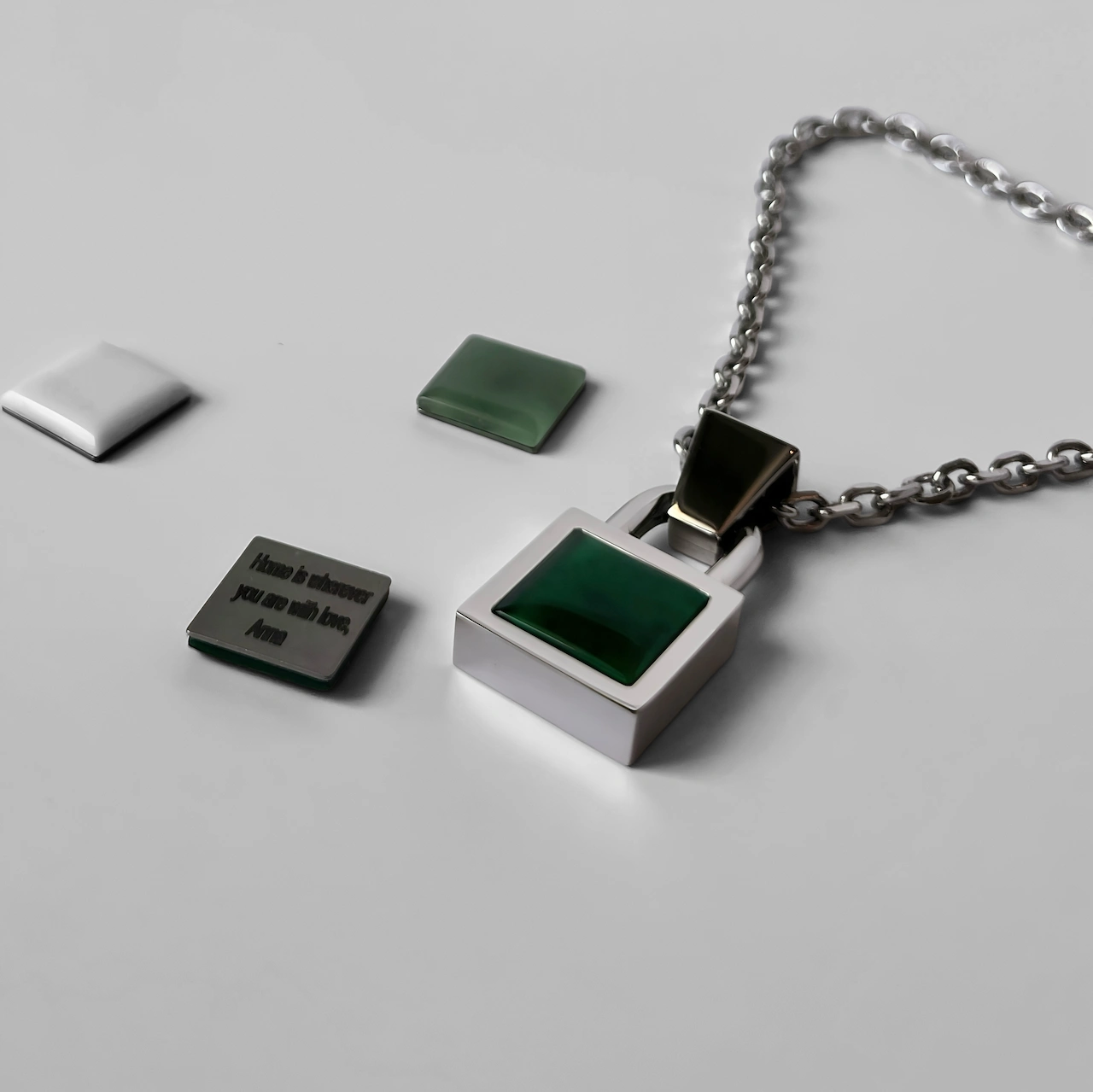 Мужская подвеска с натуральным зелёным агатом— камень жизненной силы, роста и обновления. Внутри скрыто личное послание.