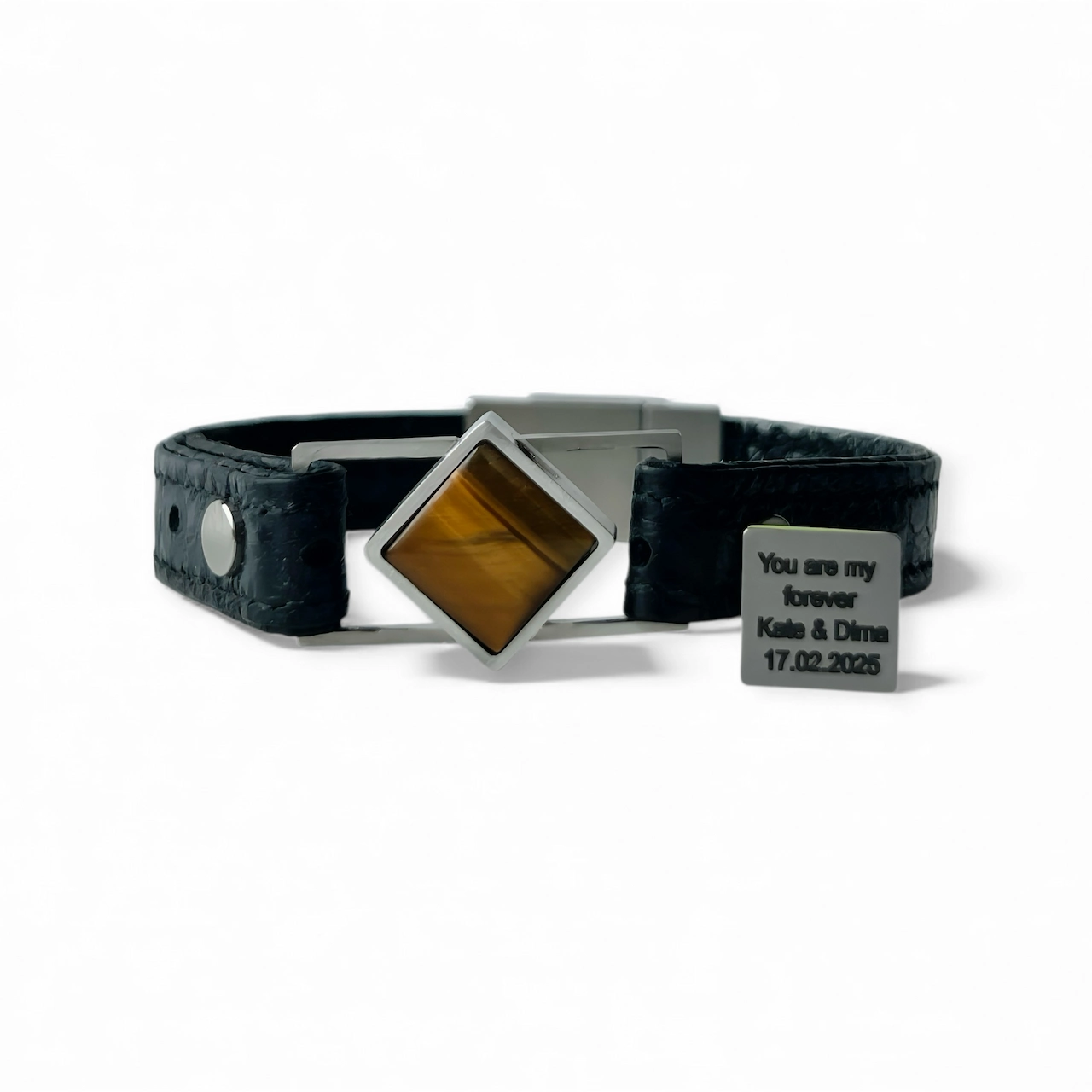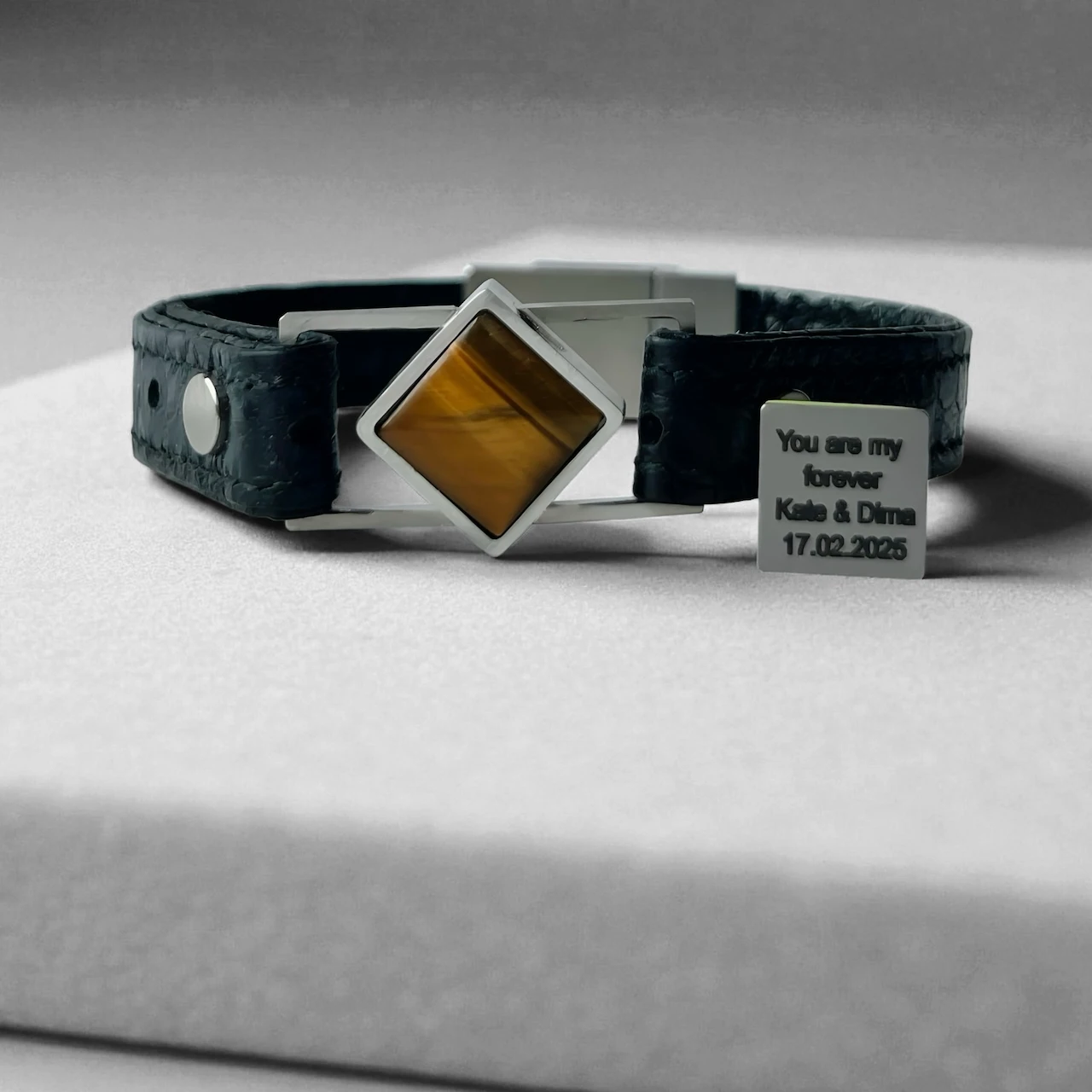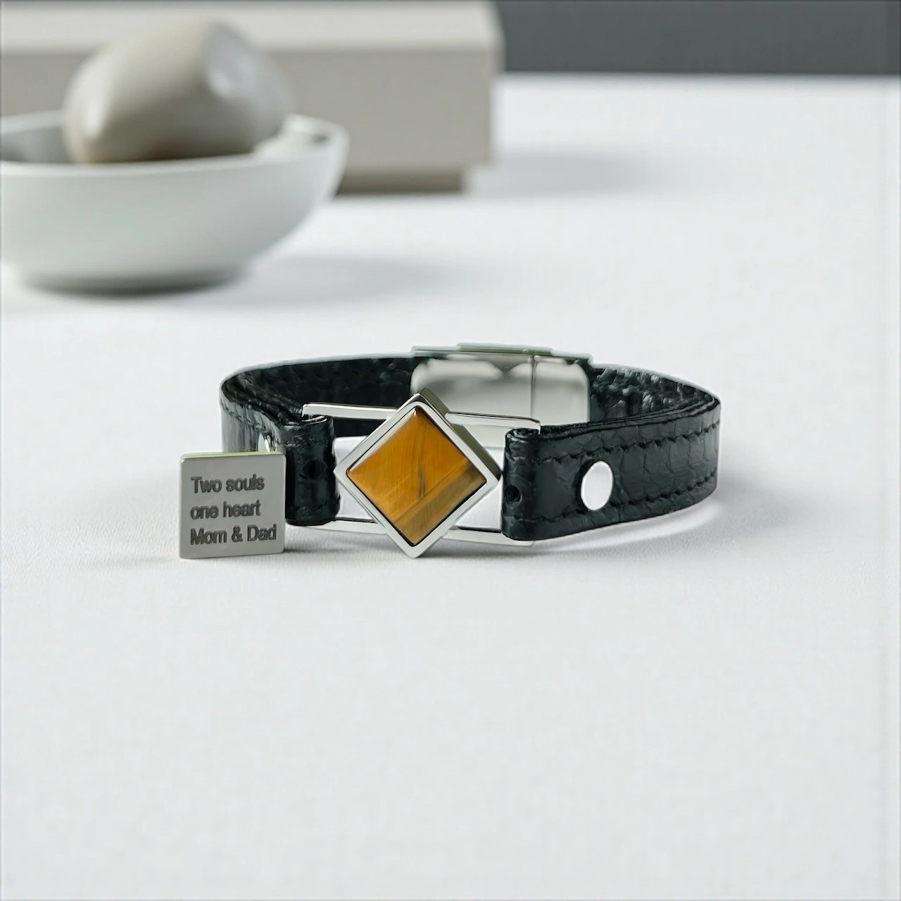 Женский браслет с натуральным тигровым глазом и скрытым посланием внутри.