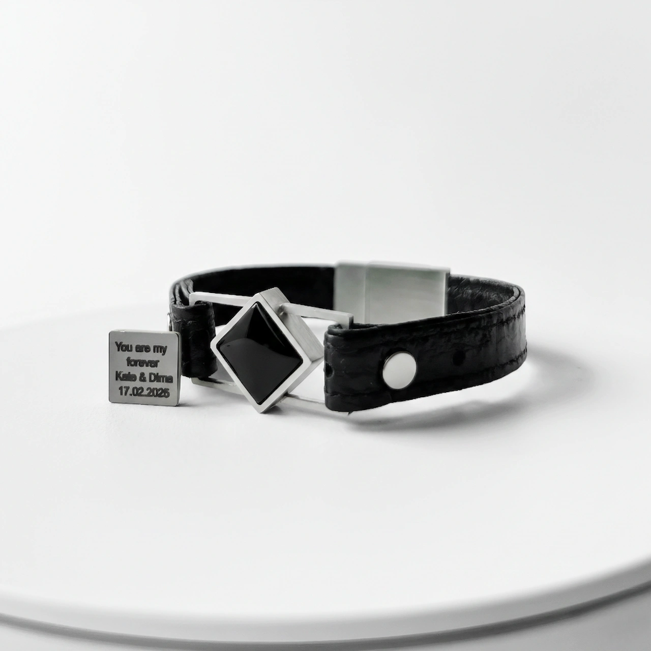 Женский браслет с натуральным черным агатом и скрытым посланием внутри.